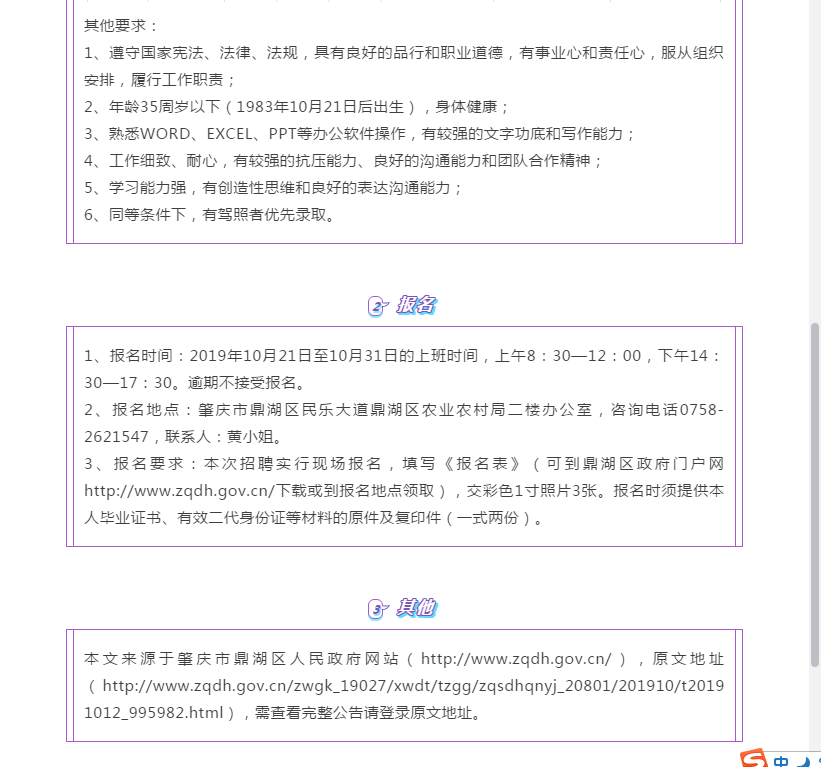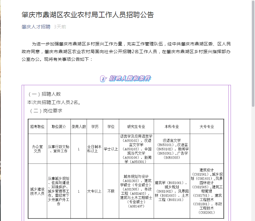 肇慶市鼎湖區(qū)農業(yè)農村局工作人員招聘公告